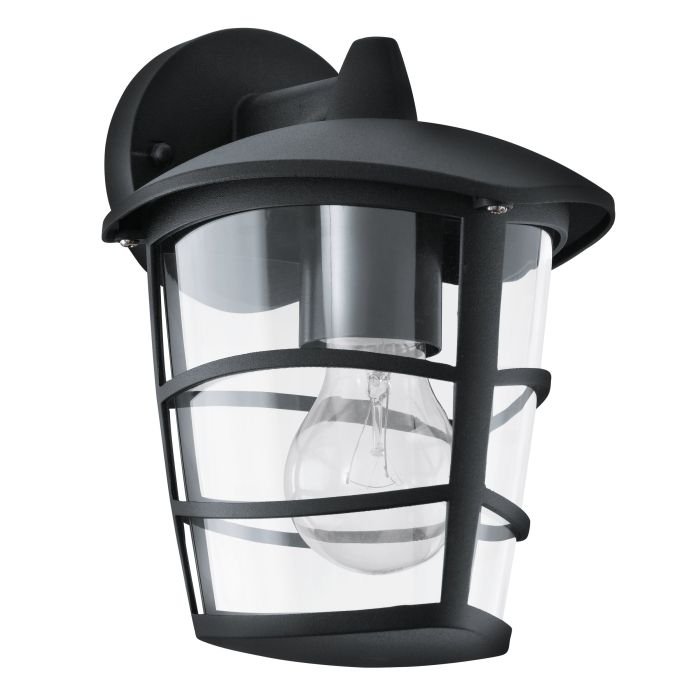 El aplique de pared ALORIA combina un diseño moderno con una estructura robusta y funcional. Fabricado en aluminio fundido negro, cuenta con pantallas de plástico transparente que permiten una visión directa de la bombilla, ideal para usar con bombillas decorativas tipo filamento.