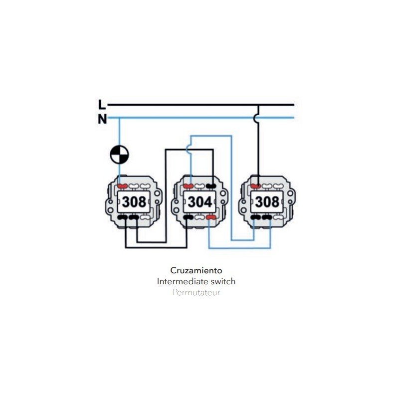 El cruzamiento es un mecanismo eléctrico que permite controlar una misma luz desde tres puntos distintos. Para que funcione correctamente, debe instalarse junto a dos conmutadores. Es una solución ideal para pasillos largos, escaleras o estancias con múltiples accesos, donde se necesita encender o apagar una luminaria desde diferentes ubicaciones.