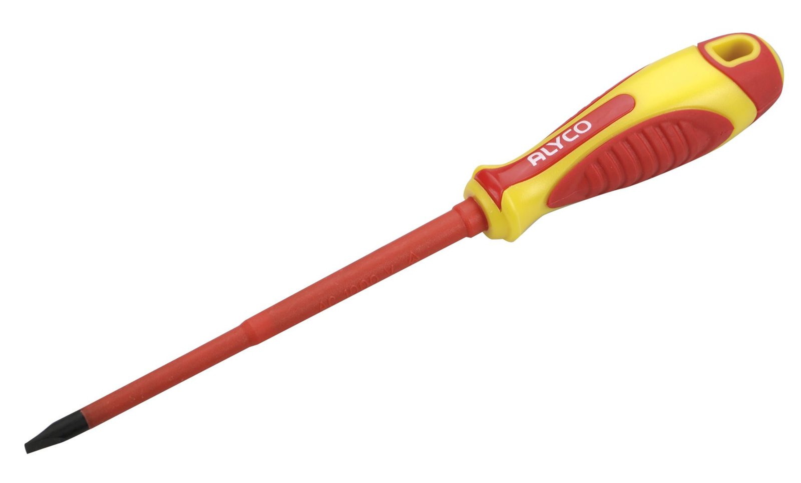 El Destornillador de Boca Plana Aislado ALYCO es una herramienta profesional diseñada para garantizar la seguridad en trabajos eléctricos. Con una capacidad de aislamiento de hasta 1000 V en corriente alterna y 1500 V en corriente continua, cumple con las normativas EN 60900 y certificación VDE, asegurando un uso seguro en entornos eléctricos.