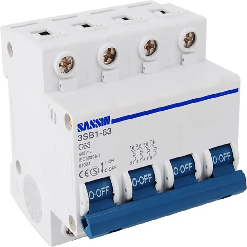 El Interruptor Automático Magnetotérmico 4P 40A de Sassin, proporciona una protección fiable contra sobrecargas y cortocircuitos en sistemas trifásicos.