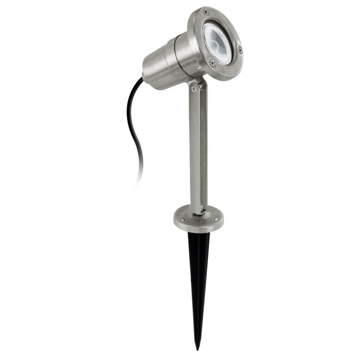 El foco de jardín LED NEMA está fabricado en acero inoxidable y cuenta con un cabezal redondo giratorio, que se fija fácilmente al suelo mediante una estaca. Incluye una bombilla LED GU10 que emite una luz blanca cálida y agradable, ideal para crear ambientes acogedores en el jardín.