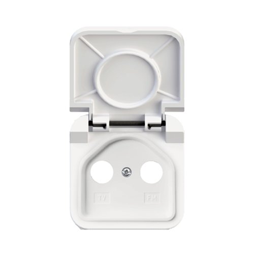 La placa TV-FM con tapa de CEESE, perteneciente a la Serie 800, está diseñada para cubrir y proteger tomas de antena de televisión y radio, garantizando una instalación estética, ordenada y segura. Su diseño en color blanco y acabado limpio permite integrarla fácilmente en cualquier tipo de ambiente, tanto residencial como comercial.